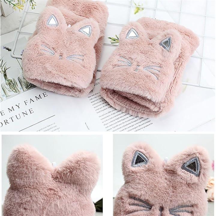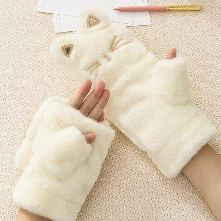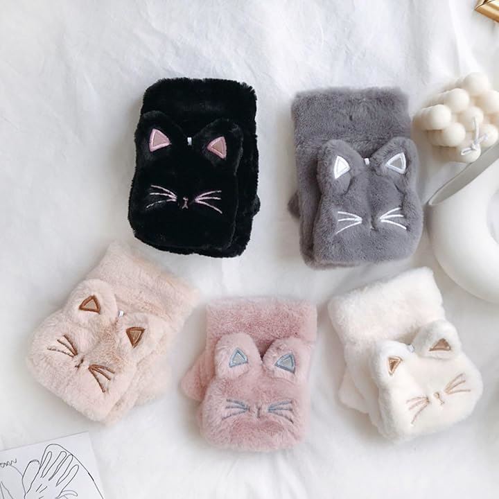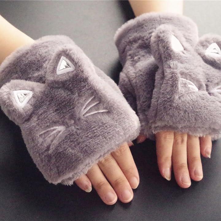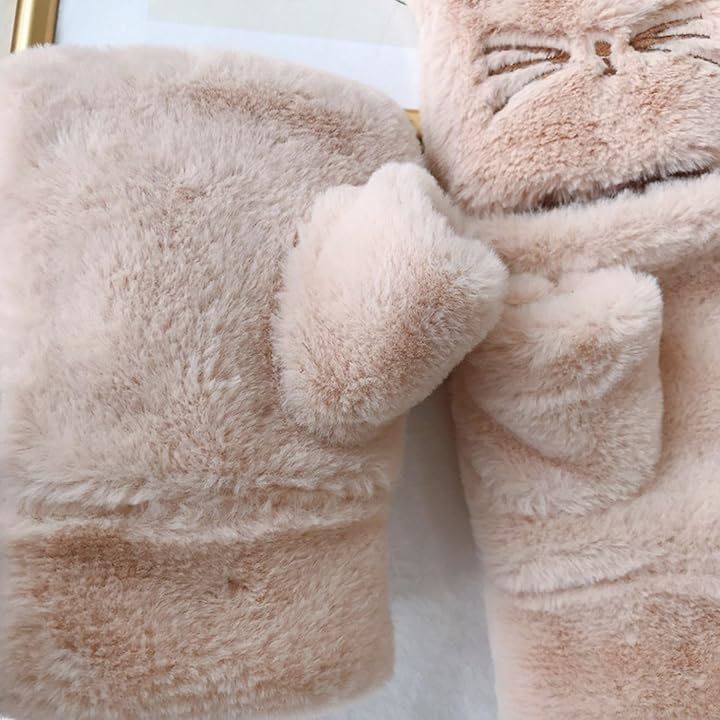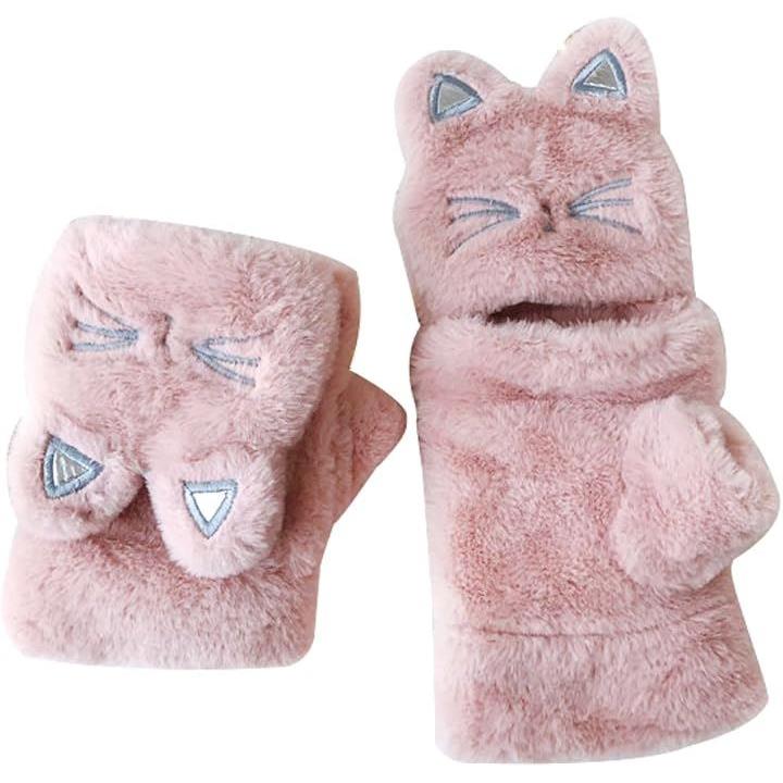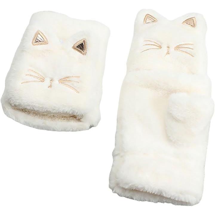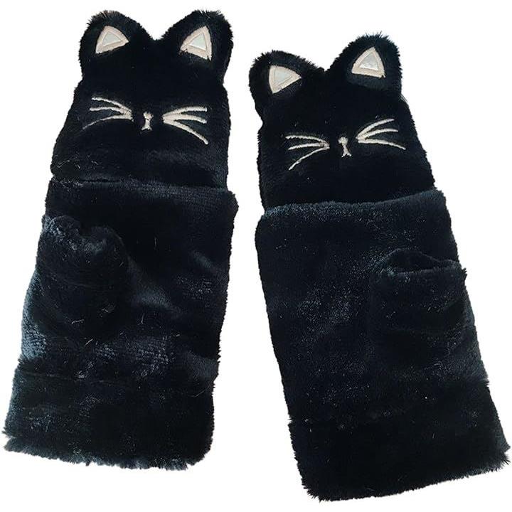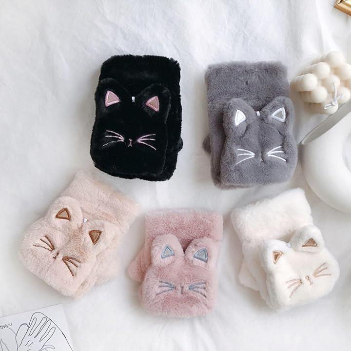 手袋 ネコ 猫顔 レディース ミトン 付け外し 指 出せる 4色 スマホ操作 防寒 裏起毛 ふわふわ モコモコ ニット ぬいぐるみ