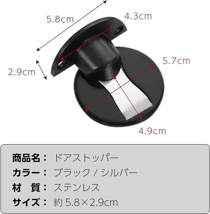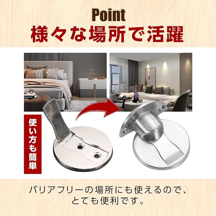 ドアストッパー マグネット式 キャッチタイプ 2個セット ドア止め 磁石固定 バリアフリー 設置用ネジとシール付き