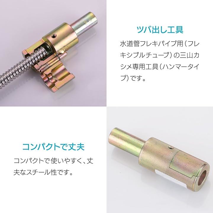 水道管フレキパイプ用ツバ出し工具 13mm 防滑加工 三山カシメハンマータイプ メンテナンス修理補修