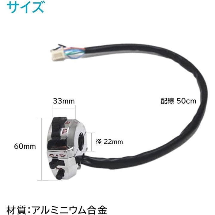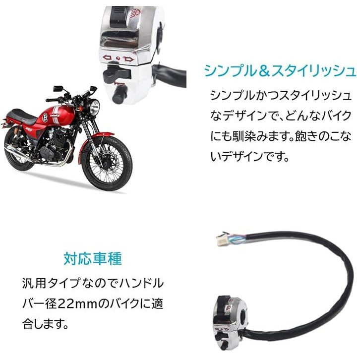 バイク用 汎用 左ハンドルスイッチ メッキ ハンドルバー径22mm対応 オートバイ 原付 スクーター