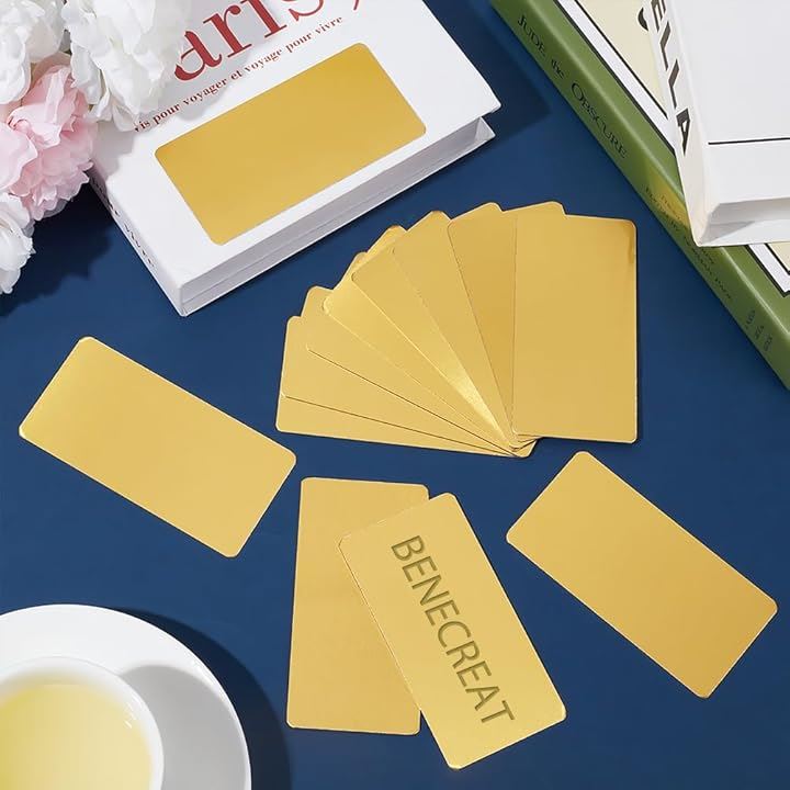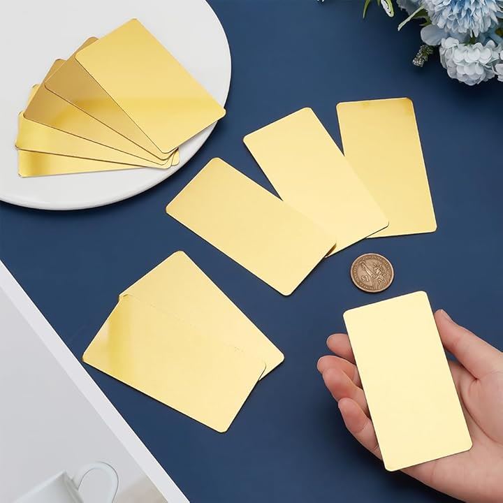 アルミ札 アルミシート ゴールド 長方形 ネームタグ レーザー彫刻 ネームプレート 保護フィルム付き 無地アルミ札 刻印 迷子札 猫犬首輪用 IDタグ 名入れ DIY工芸品