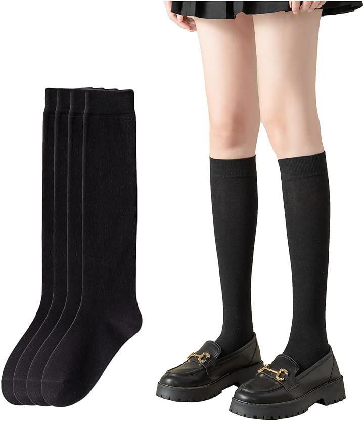 靴下 レデイーズ ハイソックス ストッキング ニーハイソックス 女性用 くつした 長め 22~25cm 4足セット