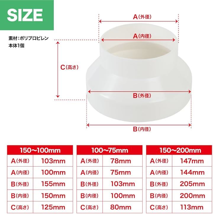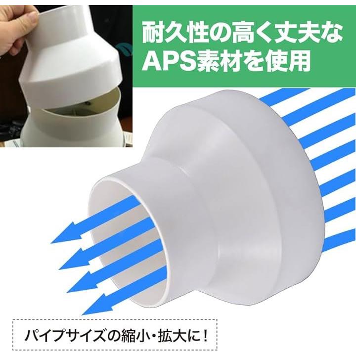 換気パイプ継手 難燃 軽量 ホワイト 異径接続 DIY 配管 アルミフリーダクト