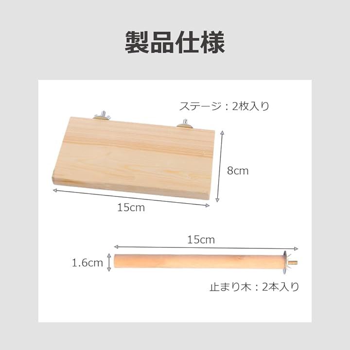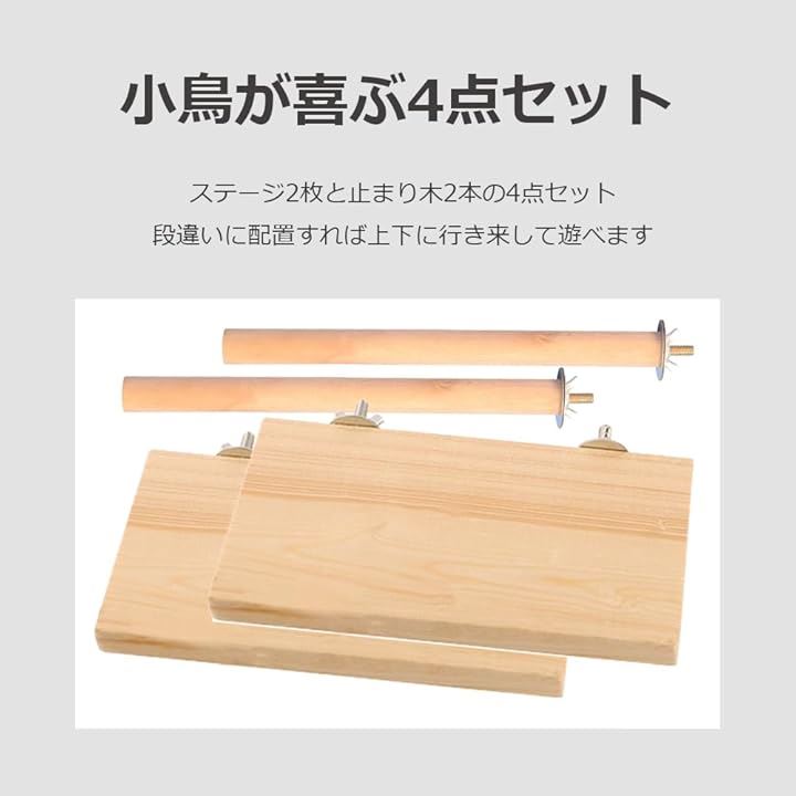 止まり木 インコ 文鳥 天然木 おもちゃ 鳥かご 装着 とまり木 足場 板 ステージ LI2310-15-A 4点セット