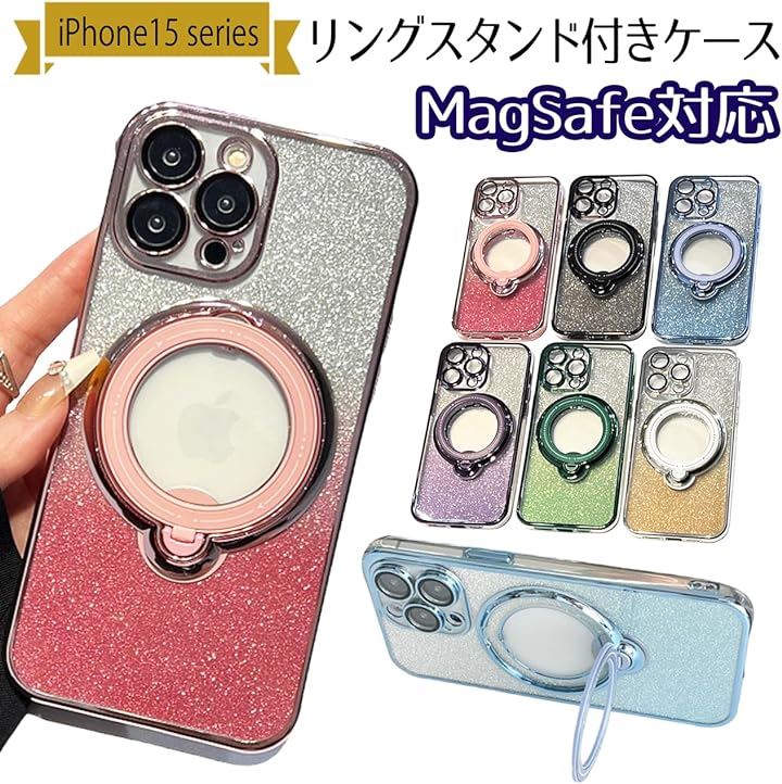 iphone15 ケース クリア カバー リング バンカーリング スマホスタンド 透明 ラメ pro promax plus カメラ保護 全面保護 |