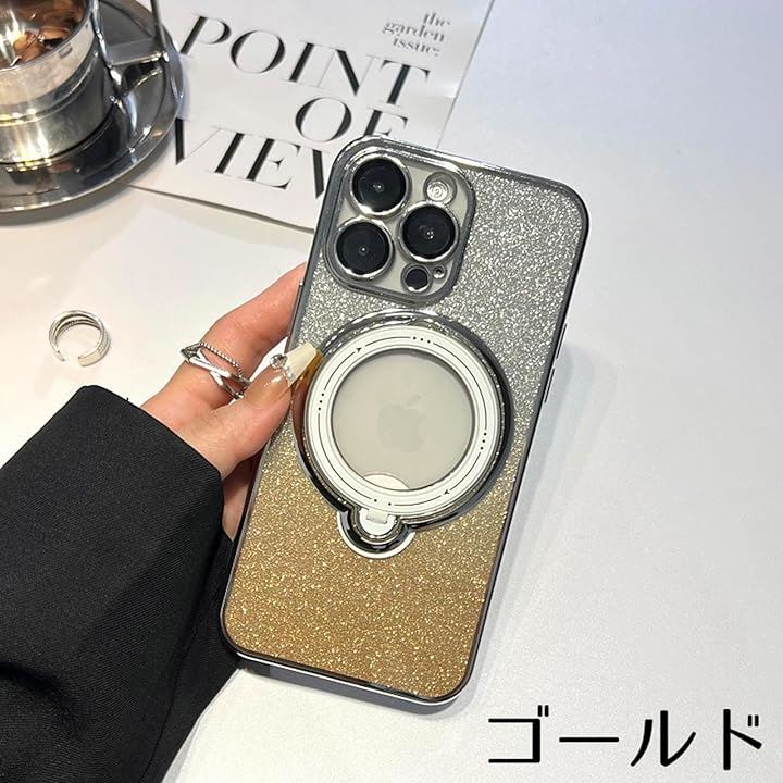 iphoneケース クリア カバー リング バンカーリング スマホスタンド 透明 ラメ カメラ保護 全面保護 シンプル おしゃれ かわいい(iPhone15Pro, ゴールド) |
