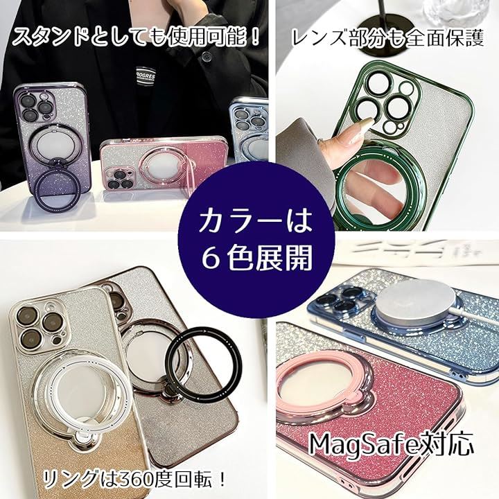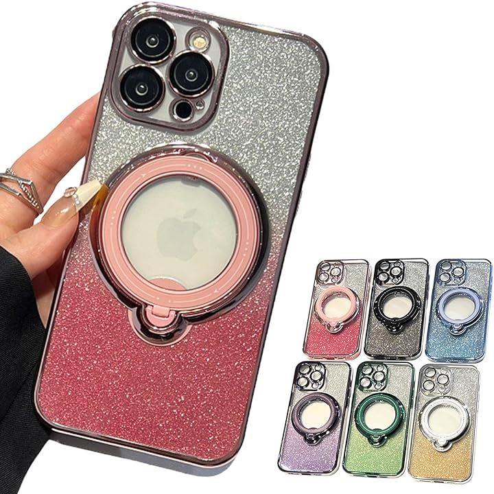 iphoneケース クリア カバー リング バンカーリング スマホスタンド 透明 ラメ カメラ保護 全面保護 シンプル おしゃれ かわいい(iPhone15ProMax, ピンク) |