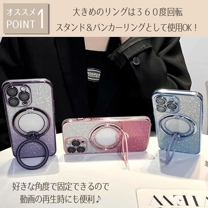 iphoneケース クリア カバー リング バンカーリング スマホスタンド 透明 ラメ カメラ保護 全面保護 シンプル おしゃれ かわいい(iPhone15Pro, ピンク) |