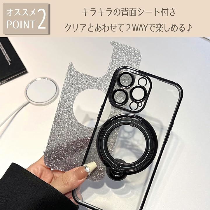 iphone15 ケース クリア カバー リング バンカーリング スマホスタンド 透明 ラメ pro promax plus カメラ保護 全面保護 シンプル おしゃれ かわいい (iPhone15Pro, ブラック) |