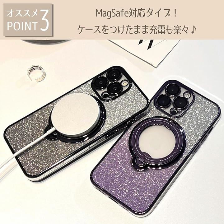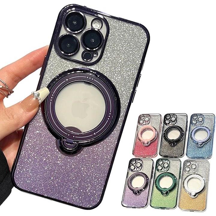 iphoneケース クリア カバー リング バンカーリング スマホスタンド 透明 ラメ カメラ保護 全面保護 シンプル おしゃれ かわいい(iPhone15Pro, パープル) |