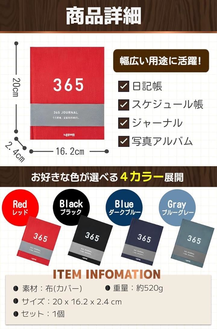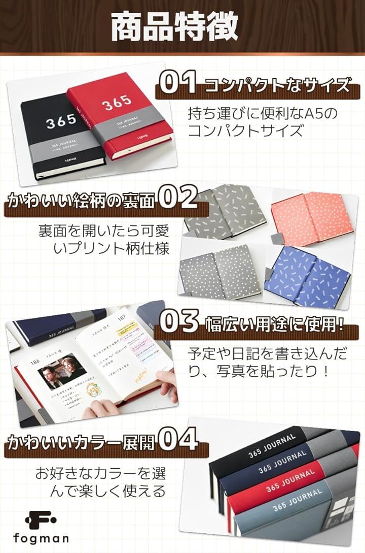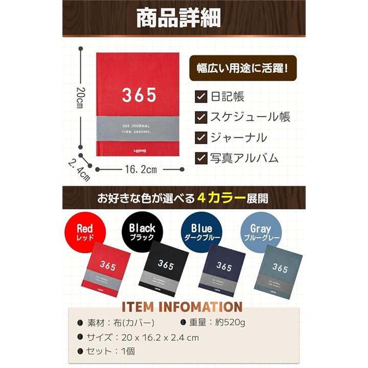 日記 ダイアリー A5 日付フリー おしゃれ かわいい ノート 365日 ジャーナル