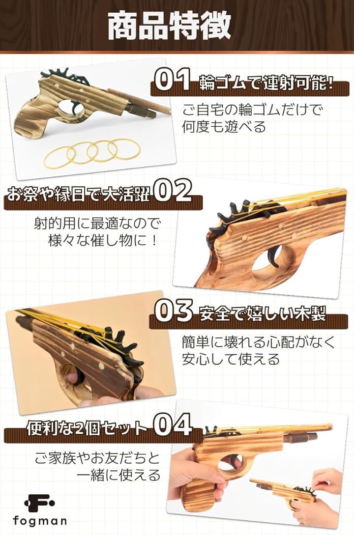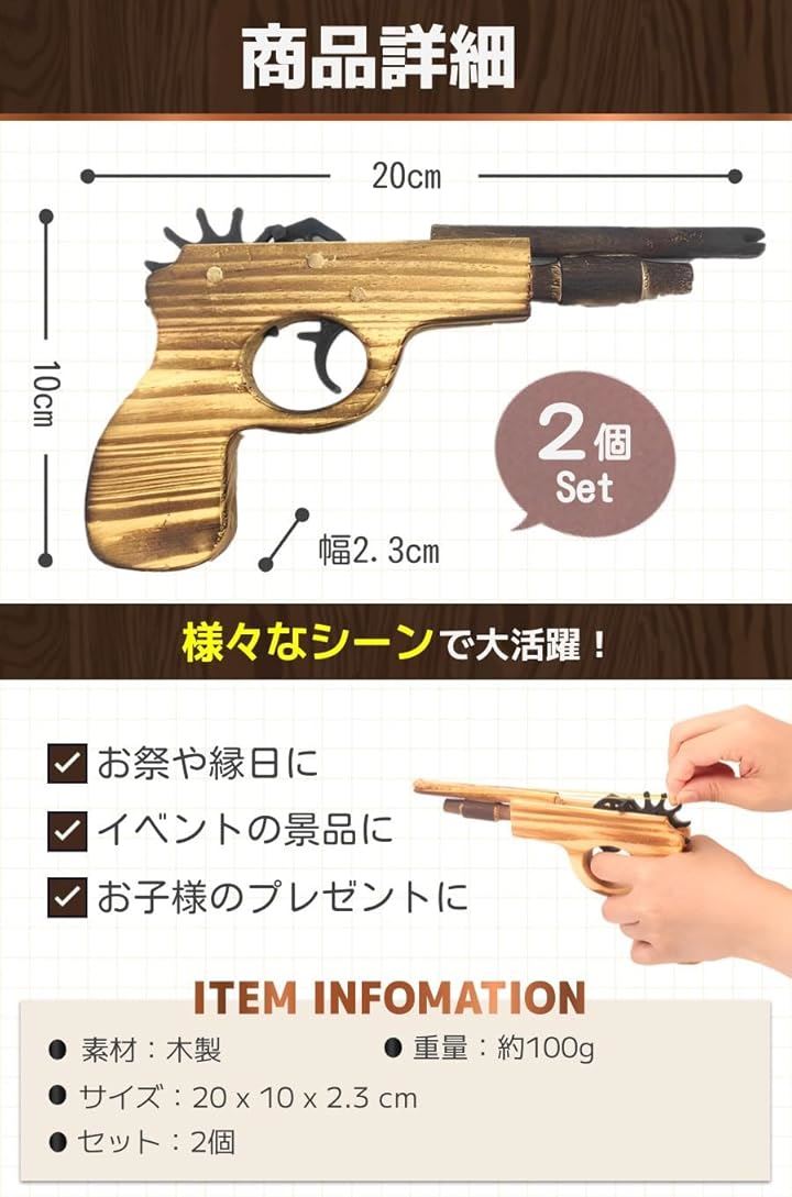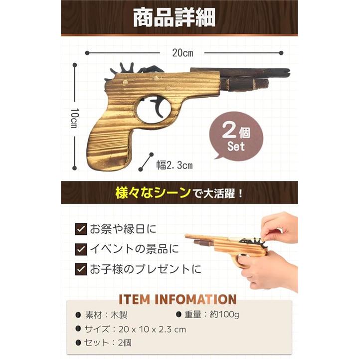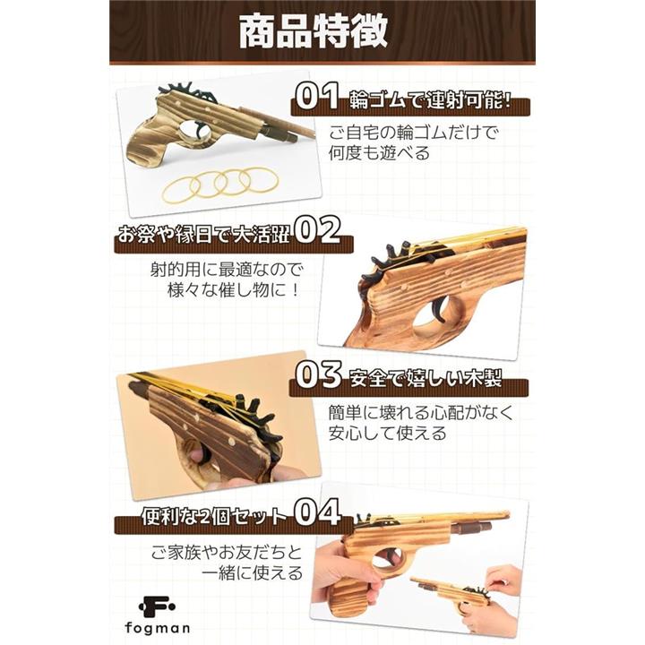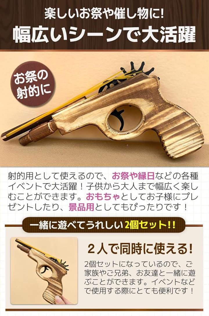 ゴム鉄砲 木製 連射可能 お祭り 射的 的当て 輪ゴム ゴム銃 景品 2個セット
