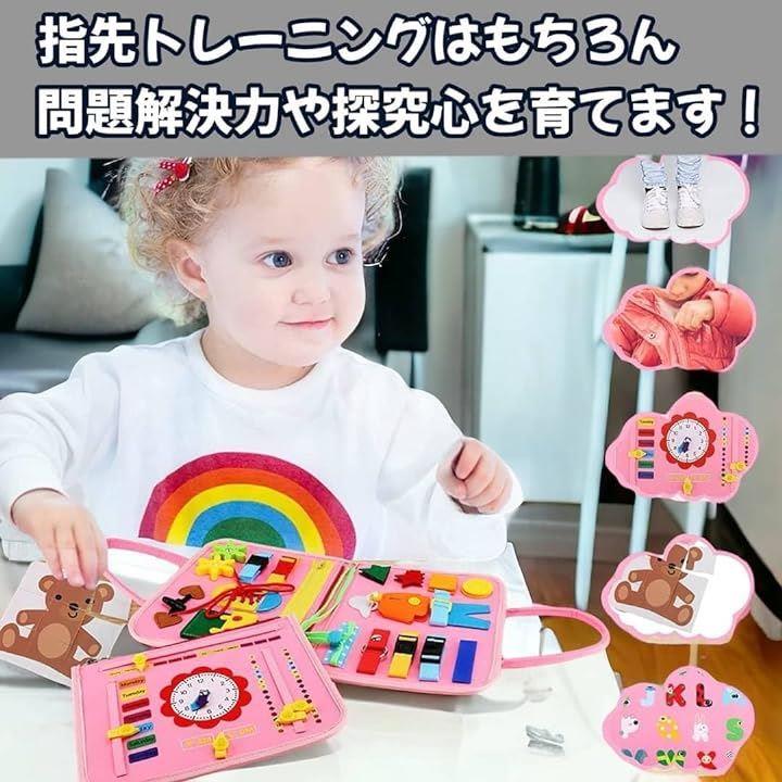ビジーボード 玩具 モンテッソーリ 指先遊び あそび 知育ボタン 紐結び バック お出かけ 生活習慣 自立練習 プレゼント 誕生日