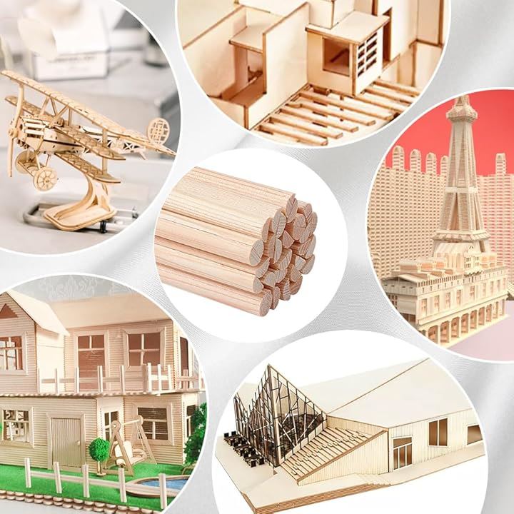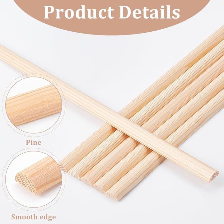 30本 半円木棒 丸棒材 丸棒1/2 直径7mm 木製 木材 スティック棒 クラフト モデリング ハンドメイド ホビー用 手作り DIY工具 手芸用 DIYモデル