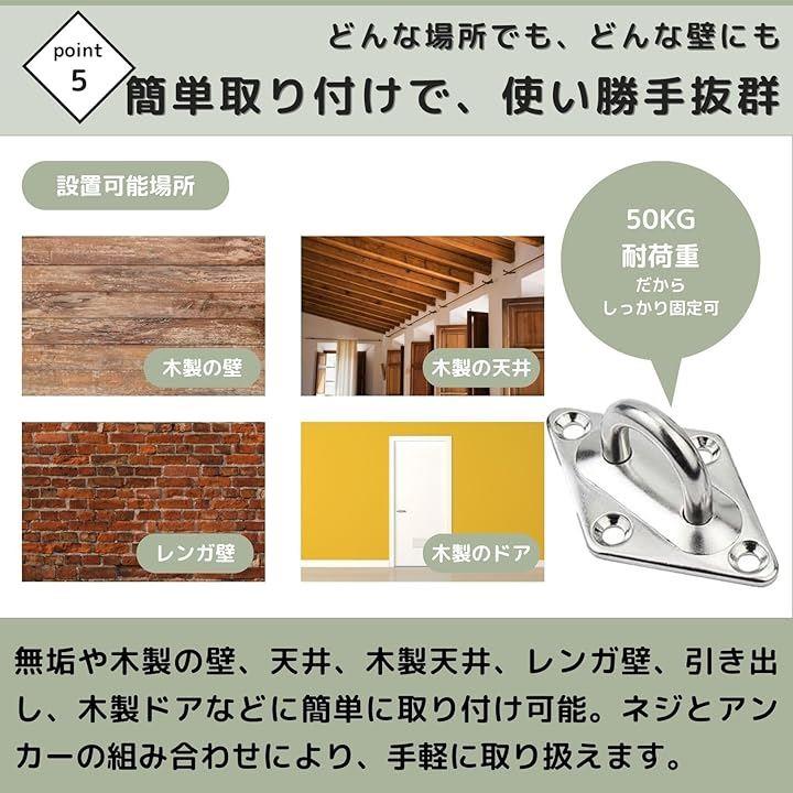 「頑丈で簡単設置、どんな場所にもマッチ。高耐久・耐荷重アイプレートで、自在なアクションを。」