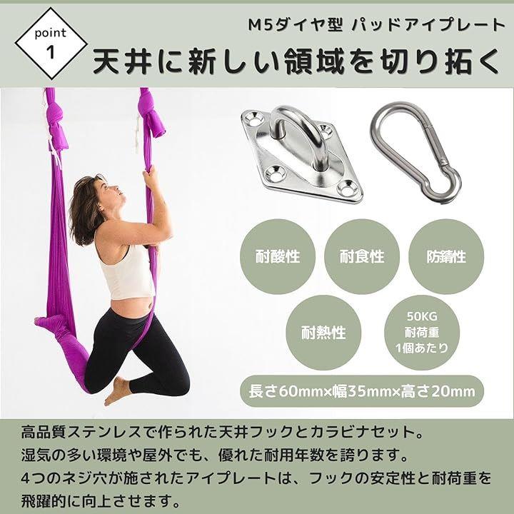 50KG(1個あたり)の耐荷重M5ダイヤ型パッドアイアイプレートが天井に新しい領域を切り拓く」高品質ステンレス製で作られた天井フックと亜鉛メッキカラビナセットです。