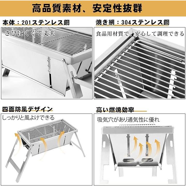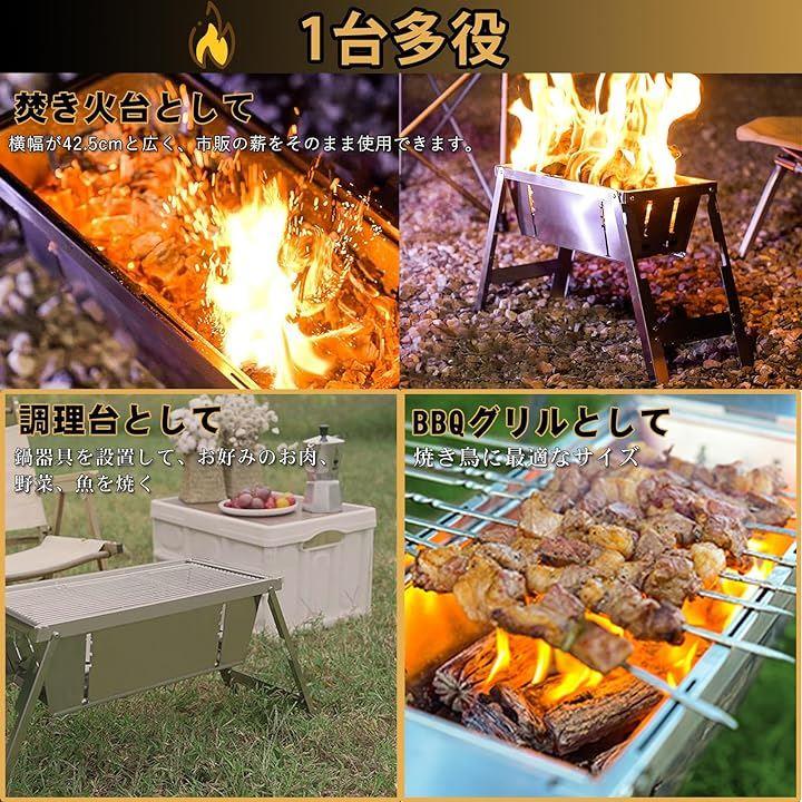 グリル 焚き火台 折りたたみ式 ステンレス製 アウトドア