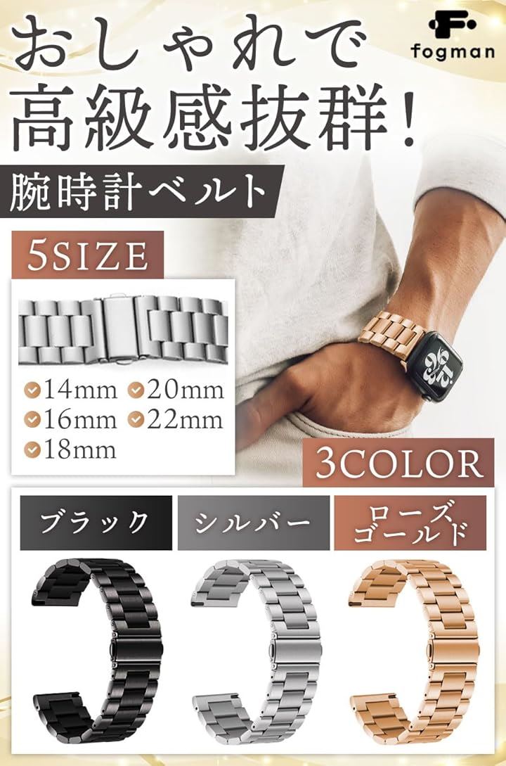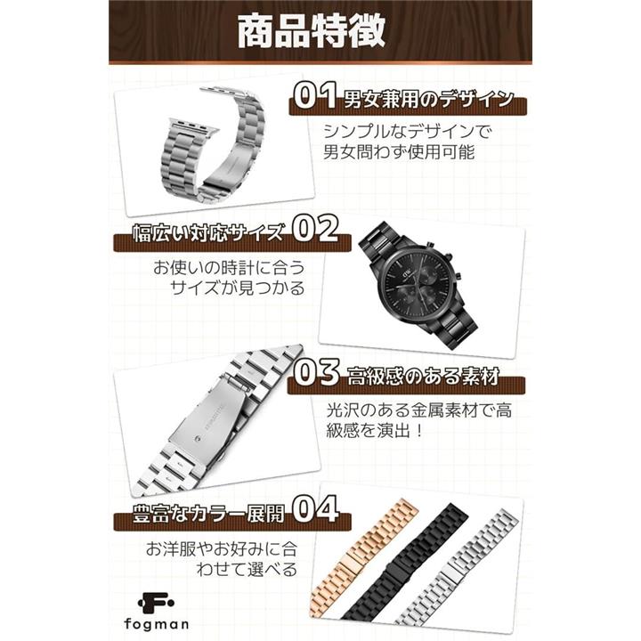 [fogman] 時計ベルト 時計バンド 交換 おしゃれ かわいい ステンレス レディース メンズ 金属 (22mm, ブラック) |