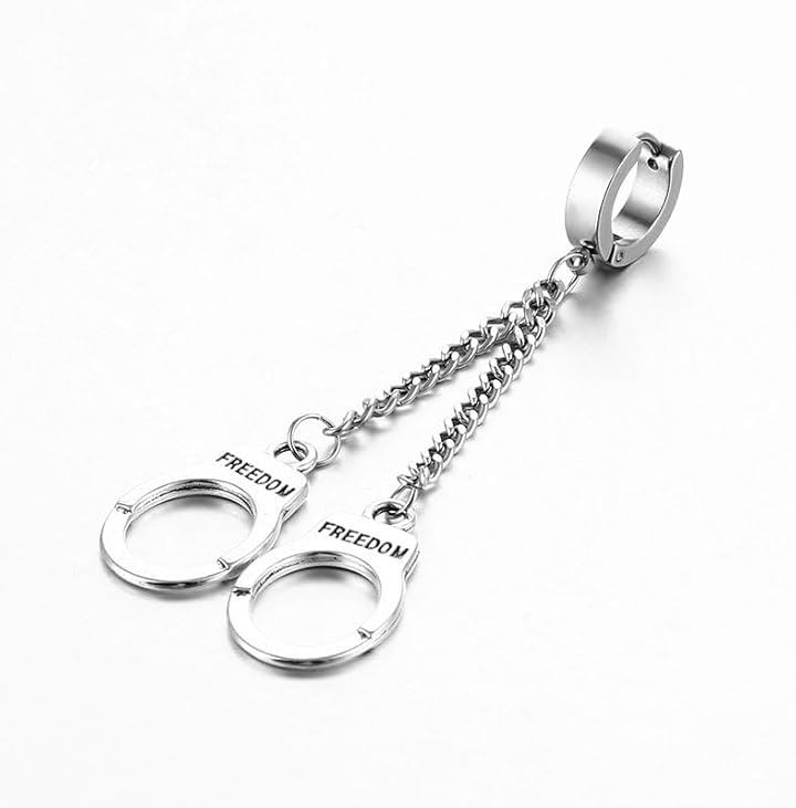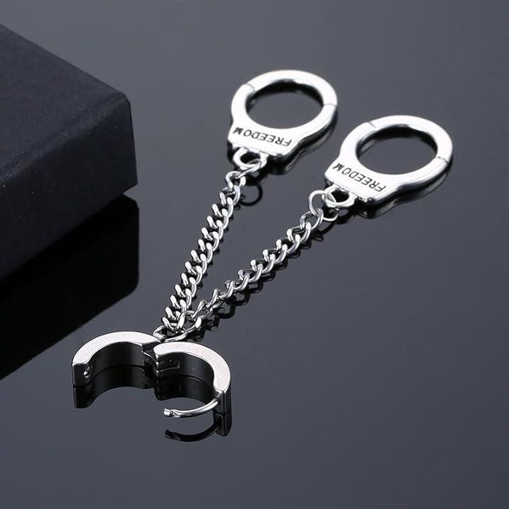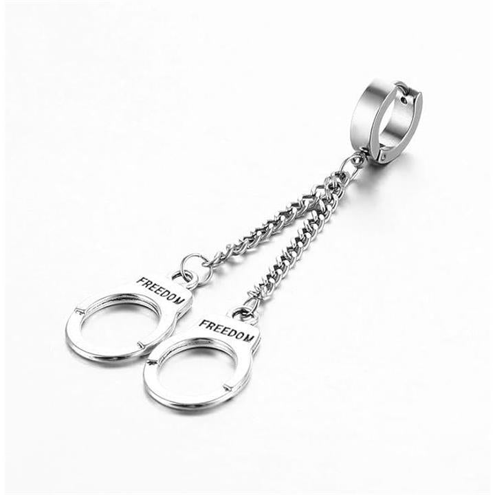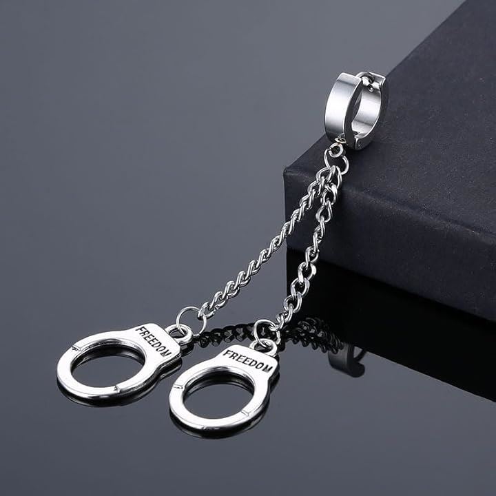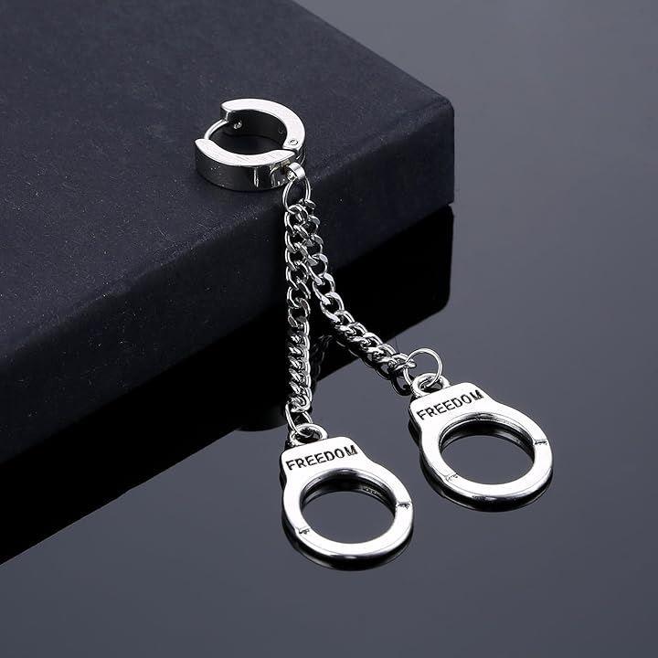 ピアス 手錠 ダブル 垂れ下がりチェーン メンズ レディース ロングチェーン 片耳用1つ入り