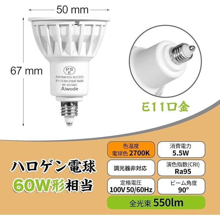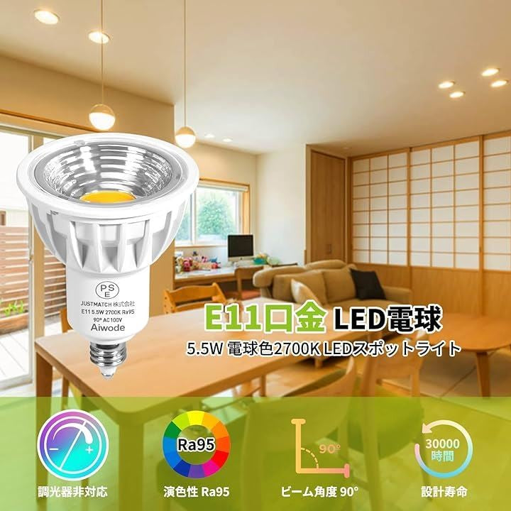 5.5W LED電球 E11口金 キッチン アウトドア オフィス レストラン PSE認証済