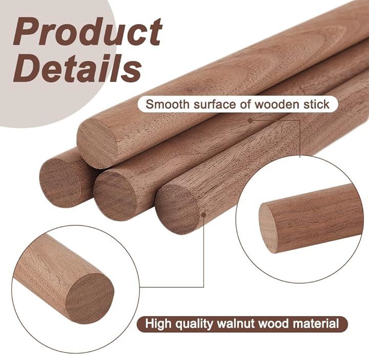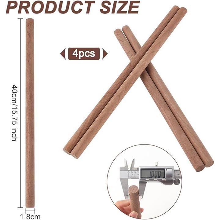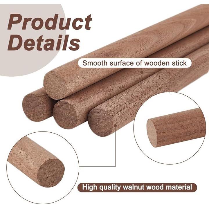 4本 丸棒材 直径18mm 長さ40cm クルミ材 木製 木材 木棒 スティック棒 クラフト モデリング ハンドメイド ホビー用 手作り DIY工具 手芸用 DIYモデル