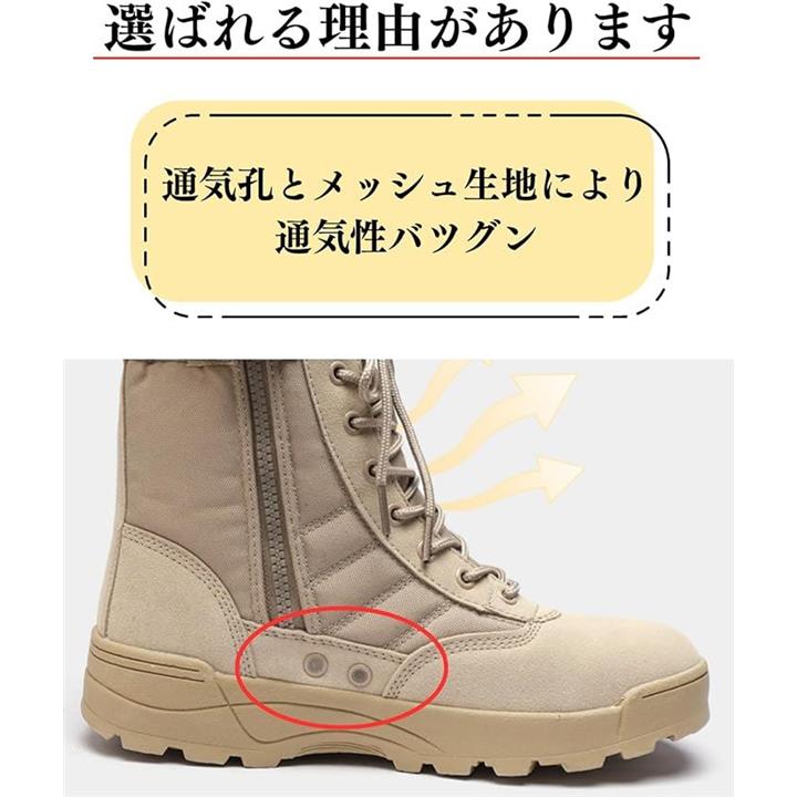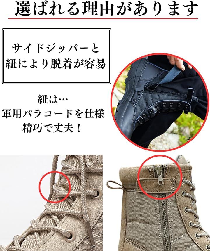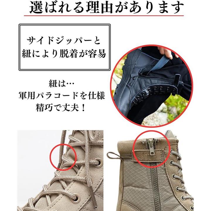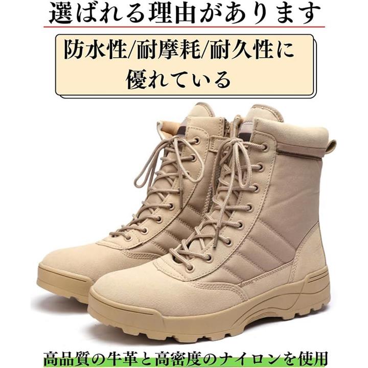 ブーツ メンズ ミリタリーブーツ 軽量 革 防水 サバゲー バイク 米軍 SWAT サイドジッパー タクティカルブーツ サバゲー靴