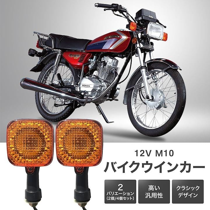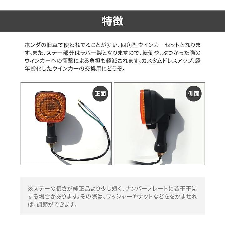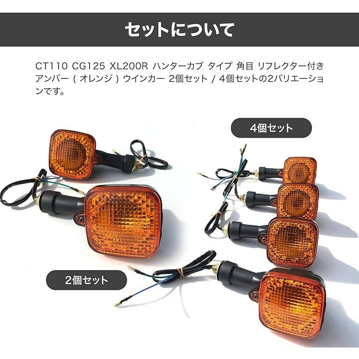 互換品バイク ウインカー リア 角目 汎用 ウィンカー ランプ 12V ラバー ステー CT110 CG125 XL200R
