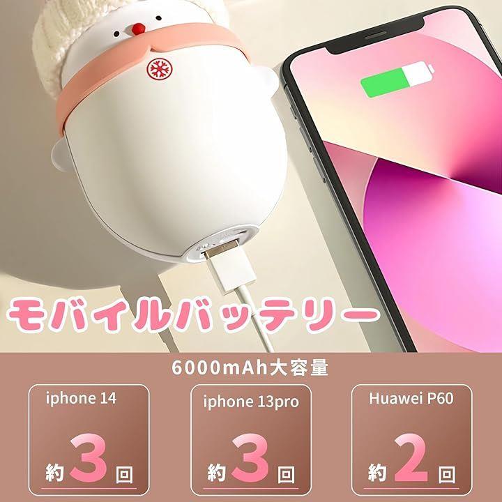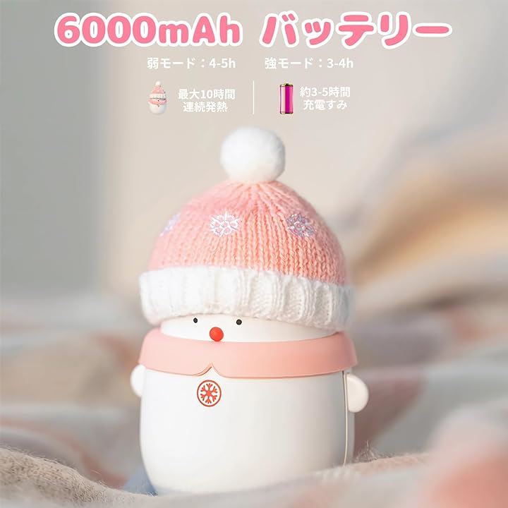 暖かい贈り物雪だるま 充電式カイロ クリスマス贈り物 6000mAh 2段階温度調節 47-60℃発熱 モバイルバッテリー機能 安全素材 可愛い 通勤/旅行/出張/ギフト/防災グッズ シール付き DIY 電気カイロ