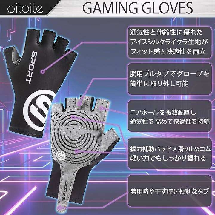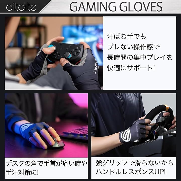 oitoite ゲーミンググローブ ゲーミング手袋 ブラック