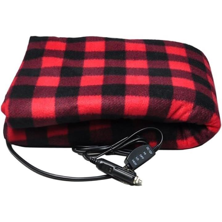 車 大サイズ 電気 加熱 毛布 ブランケット ひざ掛け 3段階切り替え 12V車用 子供 ペット 犬 猫 防寒 保温 暖かい ドライブ 旅行 仮眠 車内泊 ホット ヒーター 運転席 助手席 後部座席 100x150CM ブラックxレッド