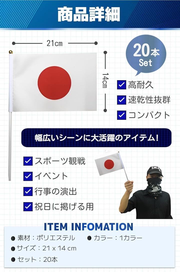 日本国旗 日の丸 手持ち ミニ イベント 応援 サッカー 20本セット
