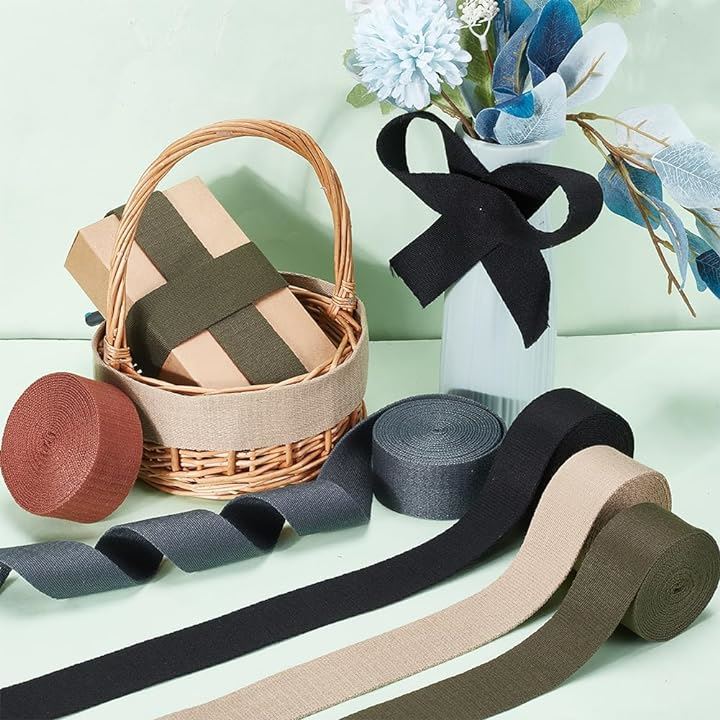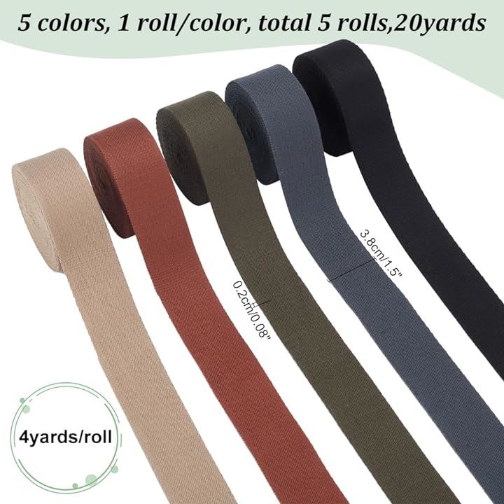 5カラー ヘビーコットン ウェビング リボン 20ヤード ウェビングストラップ フラット綿リボン 生地 DIY 衣服 アクセサリー 財布 ショルダーストラップ ギターストラップ ベルト作成