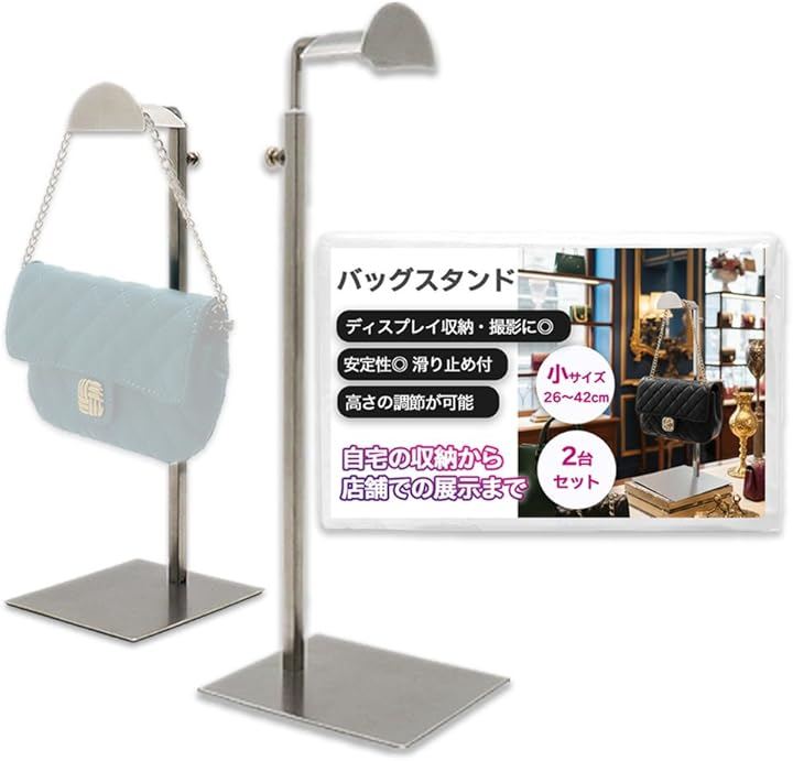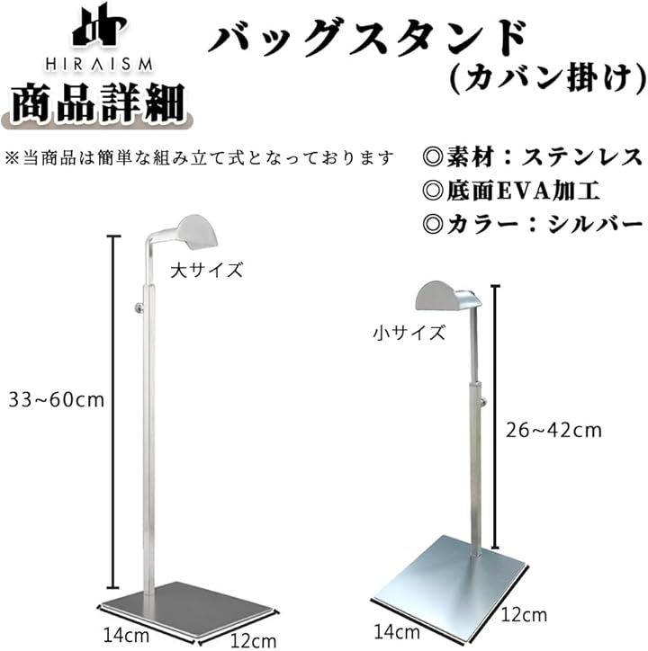 バッグスタンド カバン掛け 鞄 収納 ディスプレイ 展示 撮影 保管 高さ調節可能 型崩れ防止 滑り止め付き ステンレス製