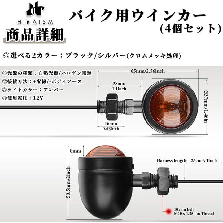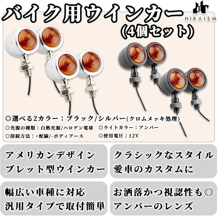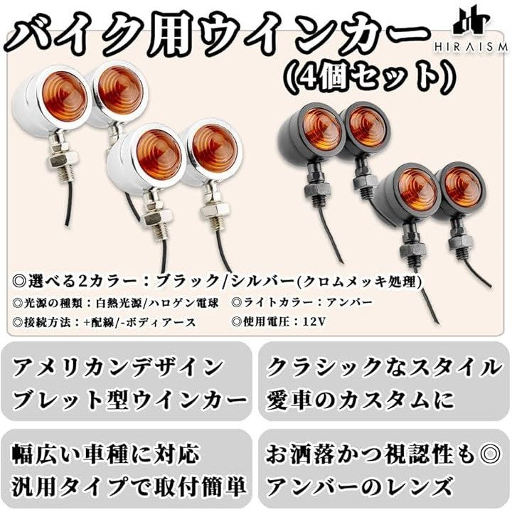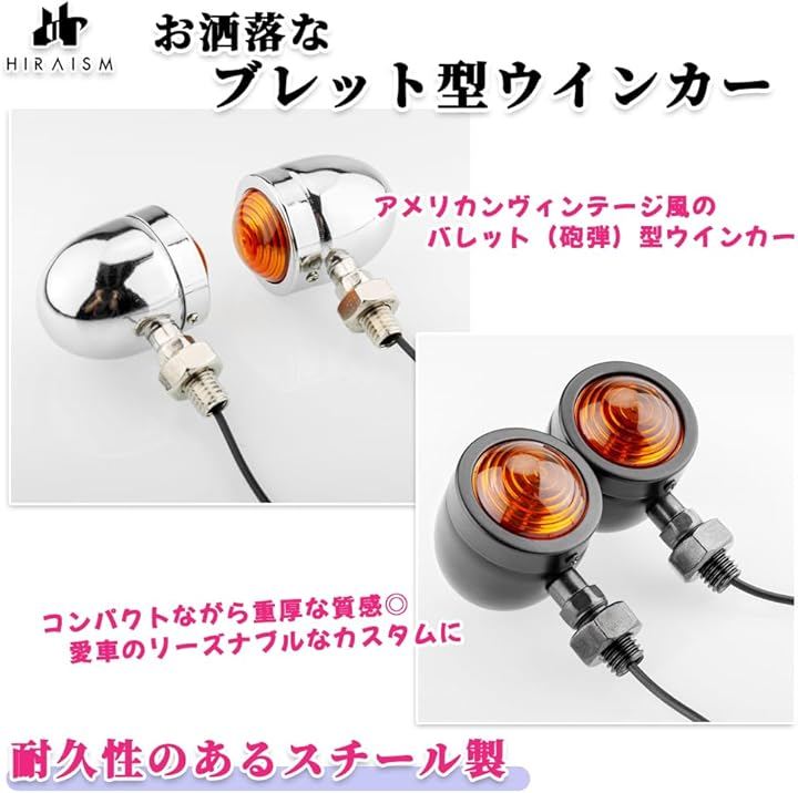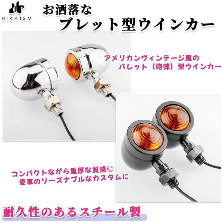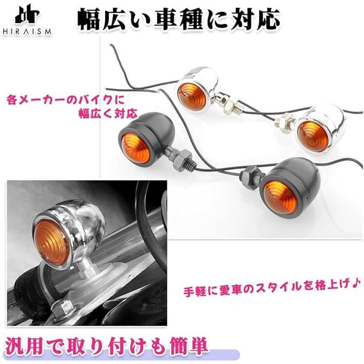 バイク ウインカー 砲弾型 ブレット 汎用 12V カスタム レトロ アメリカン ハーレー スティード モンキー カブ 4個セット