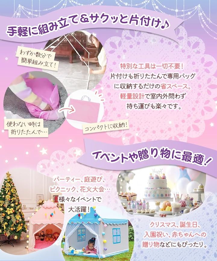 キッズテント 子供 室内 おもちゃ 女の子 男の子 プレゼント 誕生日 プリンセス 簡単 組立 保育士監修 日本ブランド