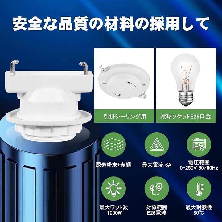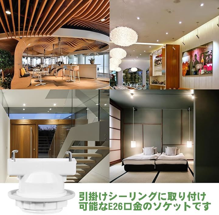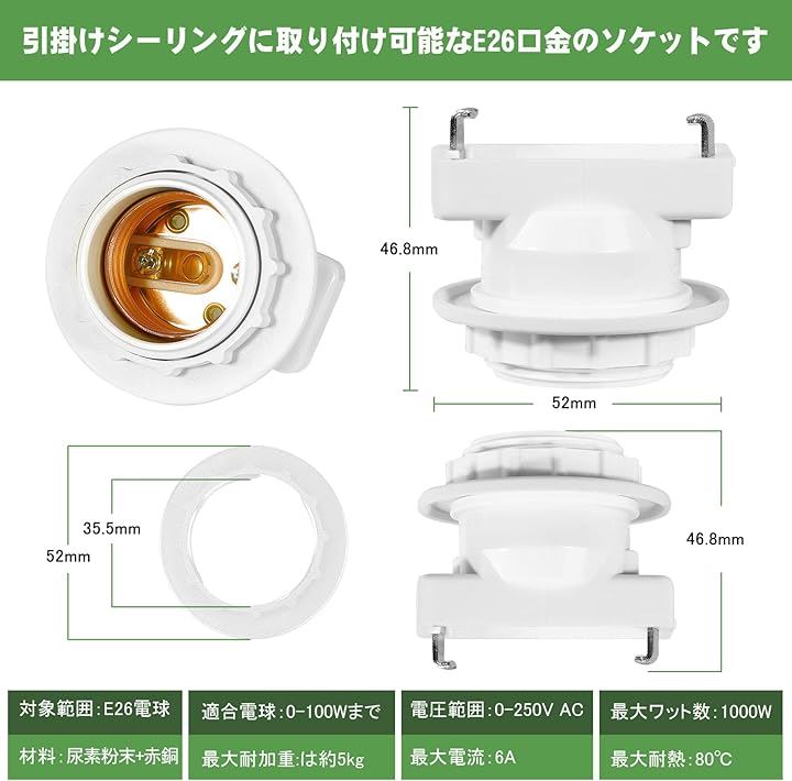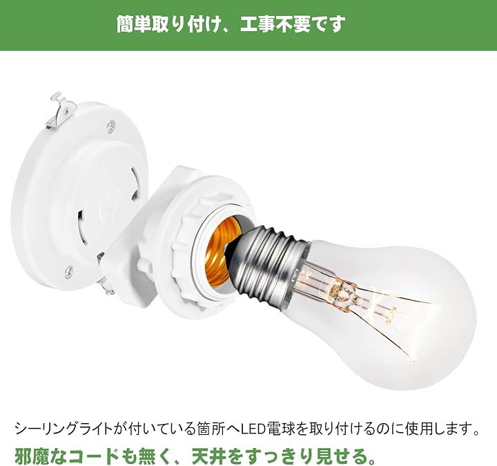 口金変換アダプタ 角型引掛ランプソケット E26口金対応 角型引掛シーリン 電球ソケット 工事不要 取り付け簡単 PSE認証