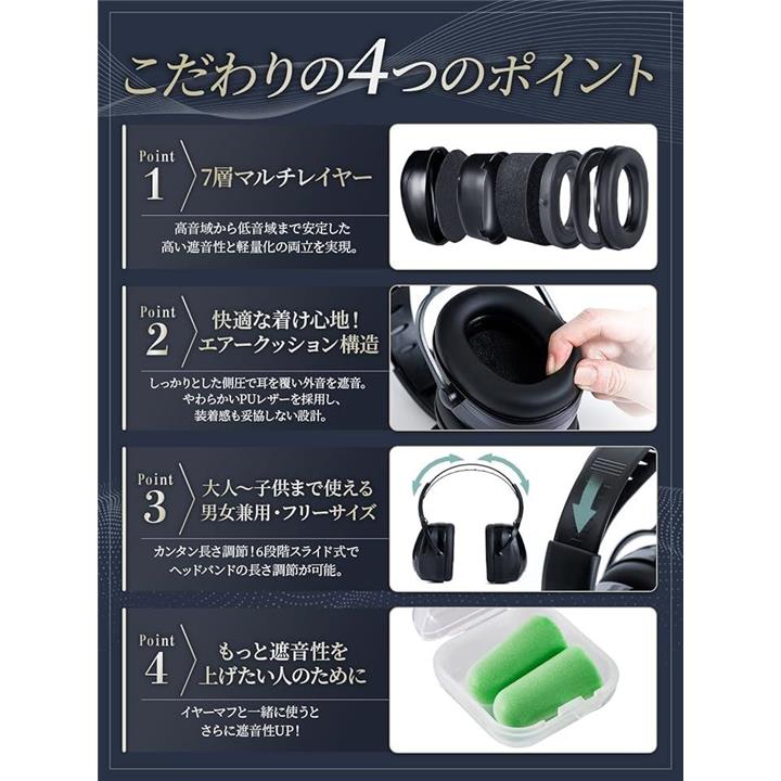 現役医師監修 イヤーマフ 防音 耳栓付き 大人 男女兼用 最大40dB 騒音対策 睡眠 勉強 集中 聴覚過敏 聴覚保護ヘッドホン