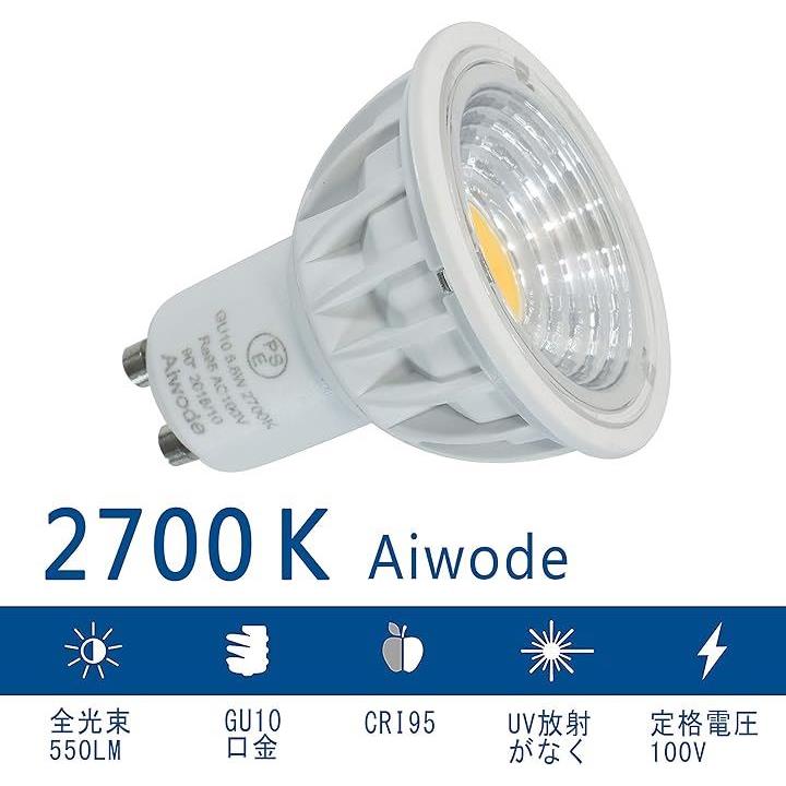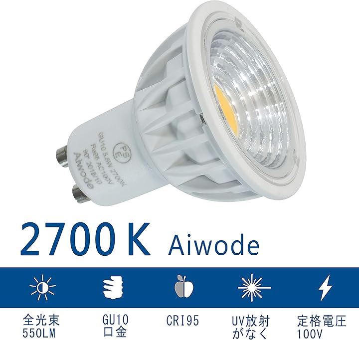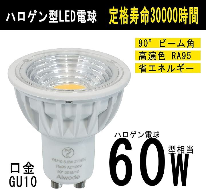 5.5W LED電球 ハロゲン電球60W型相当 GU10口金 95Ra超高演色性 スポットライト調光非対応 ビーム角度90度 全光束550lm電球色2700k