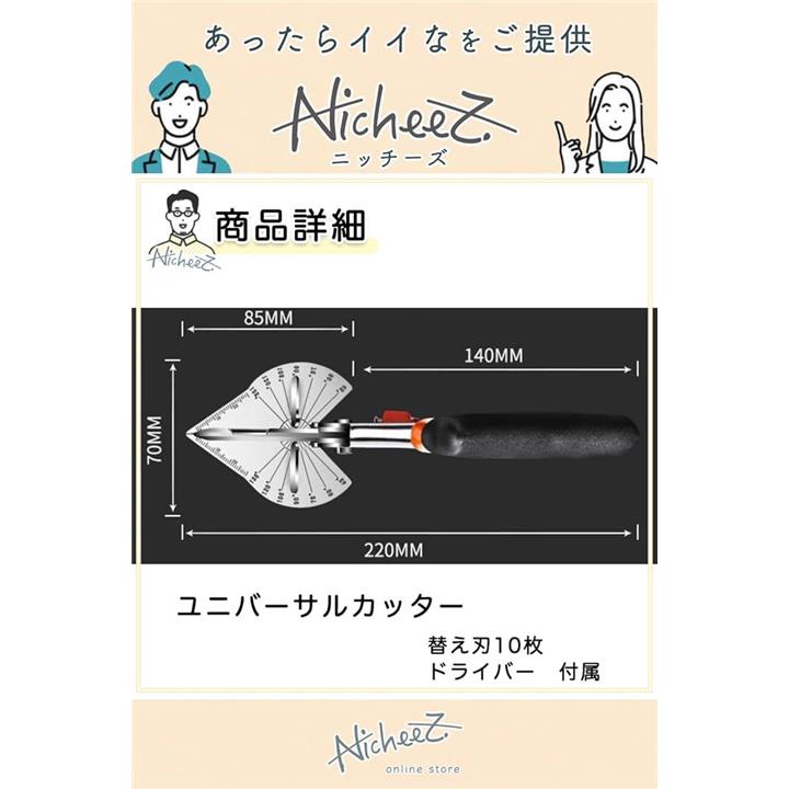 モールカッター ユニバーサルカッター 角度調節可能 マルチアングル ハサミ 替え刃10枚 ドライバー付
