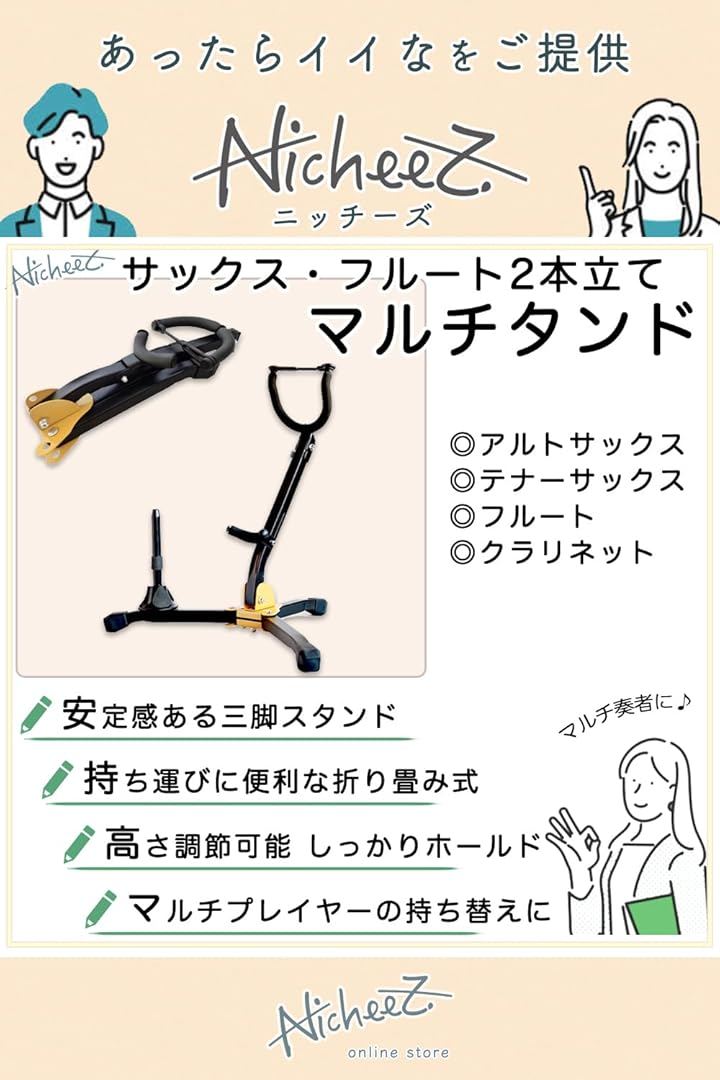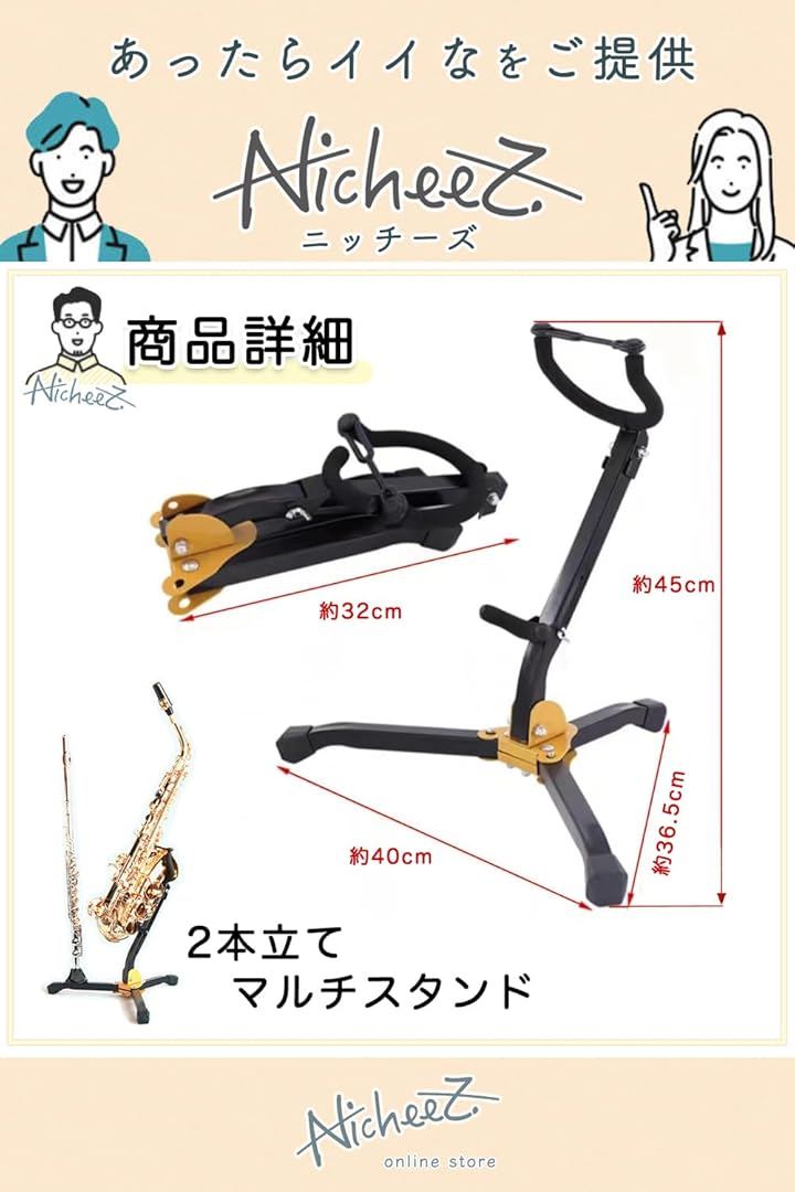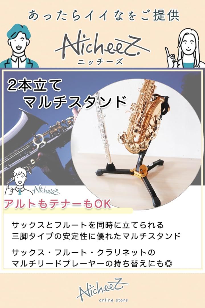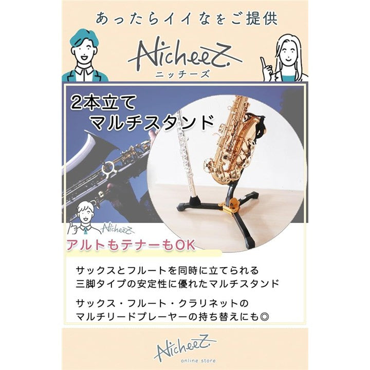 サックススタンド アルト テナー 兼用 フルート クラリネット 2本立て 三脚 折りたたみ 軽量 持ち替え