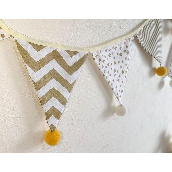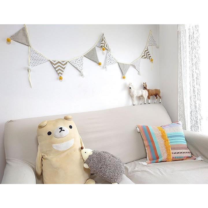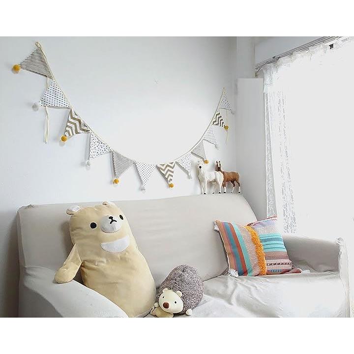 ポンポン付き 布製 ガーランド 三角 かわいい 壁飾り オーナメント ブラウン