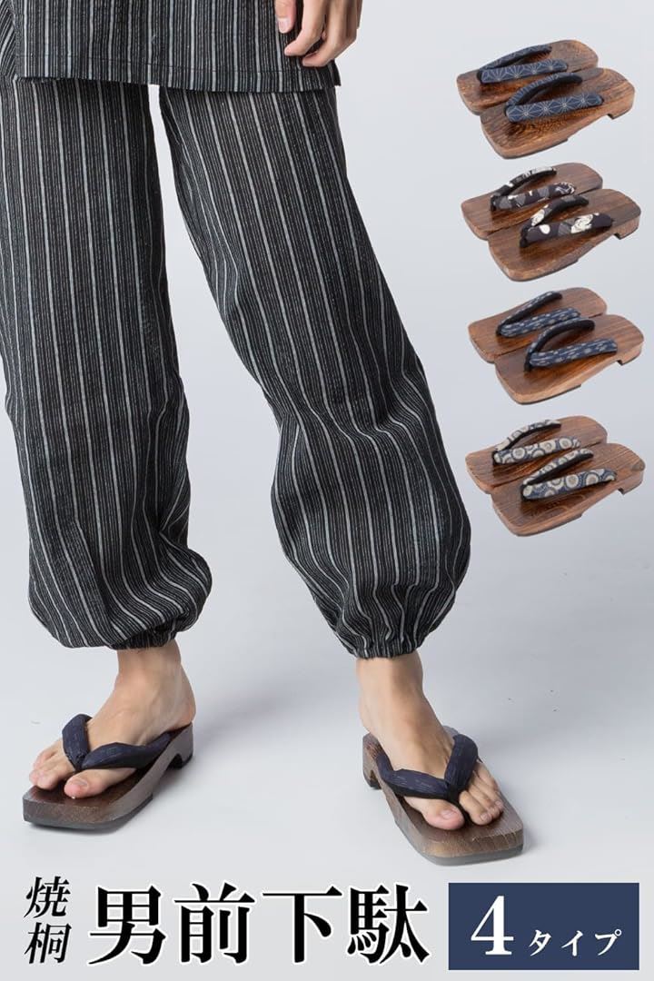 下駄 メンズ 4種類 和柄鼻緒 桐台 大人用 滑り止め 男性 天然素材 ゴムソール 夏 祭り 浴衣 甚平 花火 サンダル