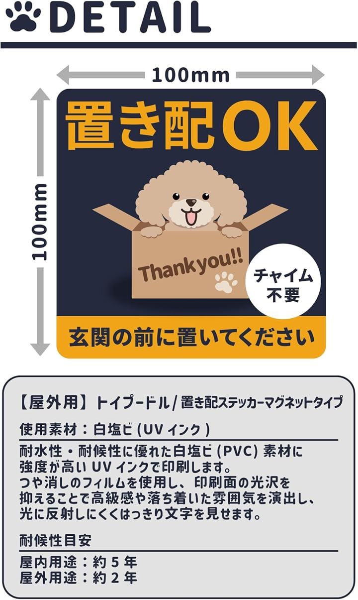2ndUp 置き配 ステッカー 置き配ok 宅配ボックス ステッカー トイプードル 置き配ボックス 不在時 玄関 荷物置き 置き配設定 |