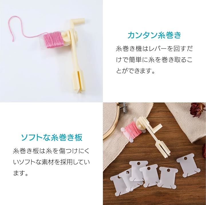 刺繍糸 すっきり収納セット 巻き取り機 糸巻き板 ステッカー付 収納ケース 保管 整理用