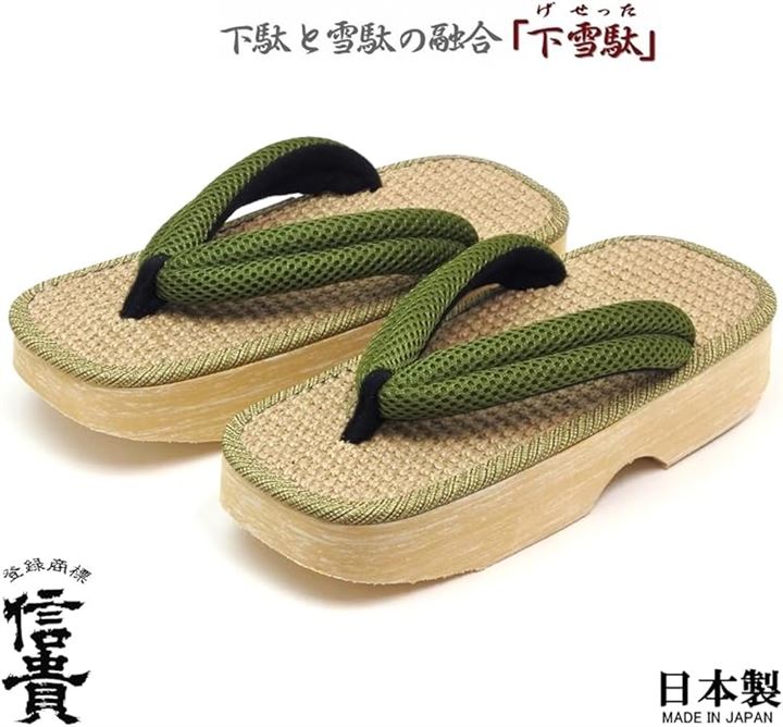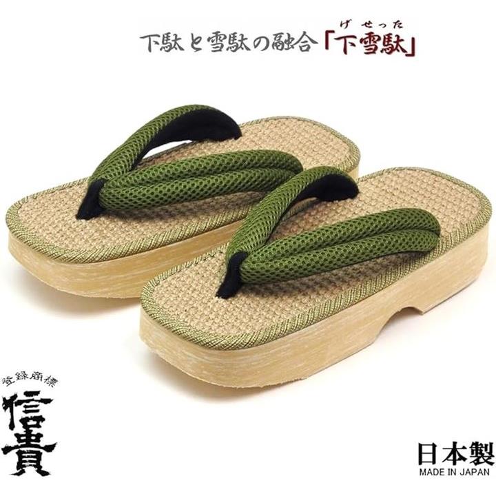 男性用 下雪駄 げせった ジュート天 8寸6分 日本製 メッシュ鼻緒 グリーン
