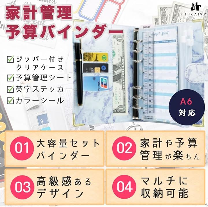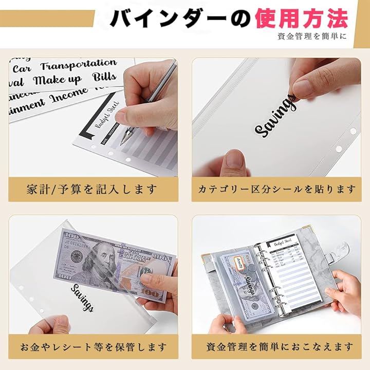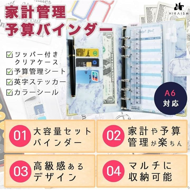 家計管理 バインダー a6 家計簿 手帳 お小遣い帳 お金 お札 レシート ポーチ ケース 多機能