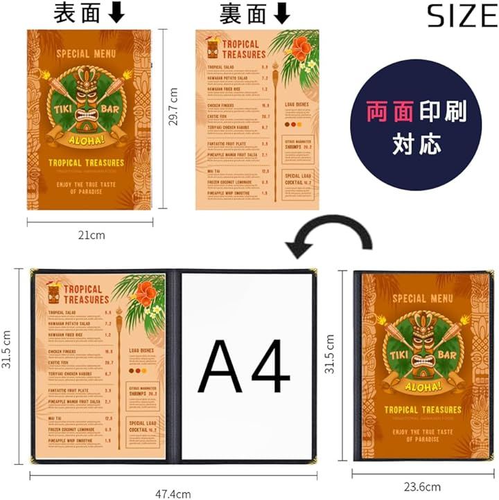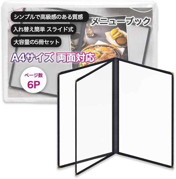 5冊セット メニューブック A4 メニュー表 クリア 縦長 おしゃれ 両面使用