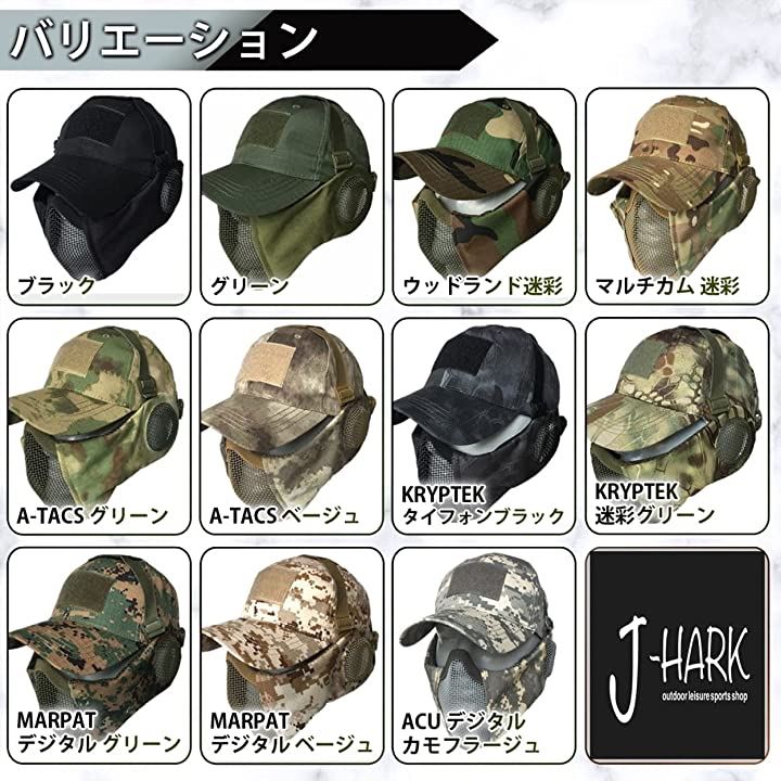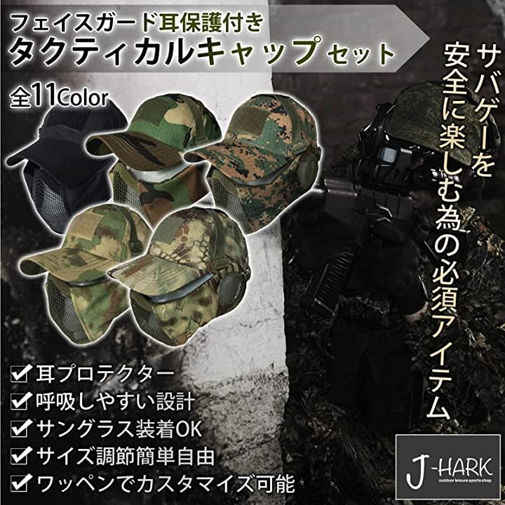 J-HARK サバゲー マスク フェイスガード タクティカル キャップ セット 耳保護付き 曇らない メッシュ フェイスマスク サバイバルゲーム 装備 |