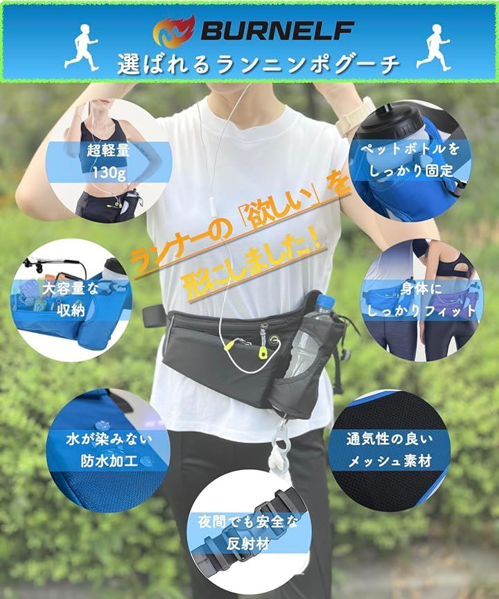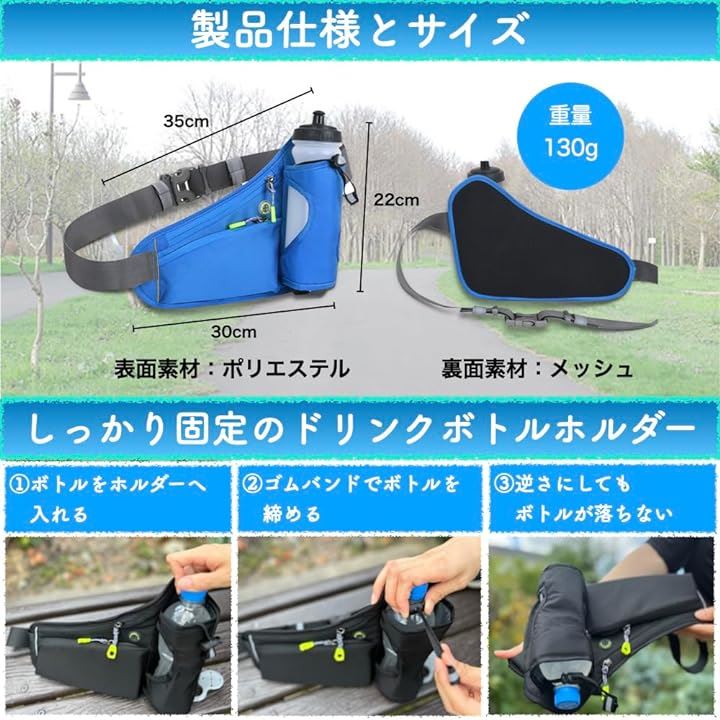 ランニングホ゜ーチ ワイド 軽量 防水 スマホ対応 光反射材 メンズ レディース ペットボトル ポーチ