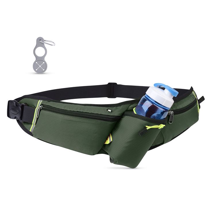 ランニングホ゜ーチ スリム ウエストポーチ 軽量 防水 薄型 大容量 揺れない 光反射材 スマホ 対応 メンズ レディース カラビナ付(アーミーグリーン) |